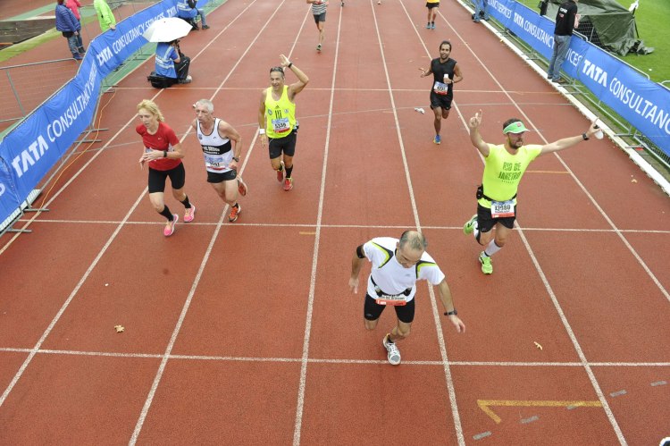 Pogled po stadionu je fascinanten. Pisana množica maratoncev teče v cilj in po drugi strani odhajajo v bele potiskane pelerine ogrnjeni maratonci iz stadiona. Red in disciplina!
