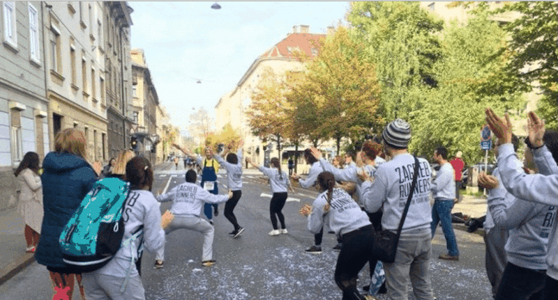 Naredili so mi slavolok in jaz sem kriče: »Auuuuuu! Bravo navijači!« podajajoč petke na obe strani stekla mimo. In to hitreje, kot sem pritekla. In to me je držalo še naprej – sicer po klancu navzdol in čez most ter celo gor po klancu do Trga Cirila in Metoda ter mimo tržnice. Tam je bilo spet še več navijačev in jaz sem si želela, da bi zalet kar trajal in trajal ampak ni…
