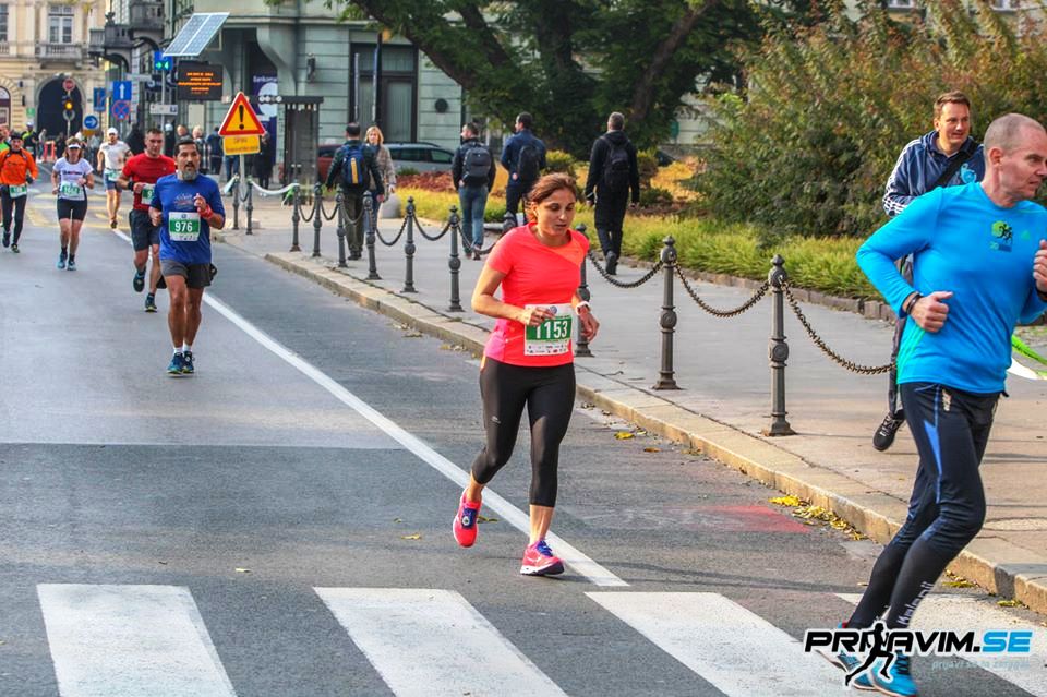 Že skoraj v centru zaslišim: “Mojca, bravo, dajmo,” in nato “Kar zmahana je” in s končkom očesa zagledam Meto in Tomaža. Zavijem v kljuko po Dalmatinovi in si mislim “kdo se je domislil tega bedastega kroga” ter se trudim teči čim bolj suvereno.