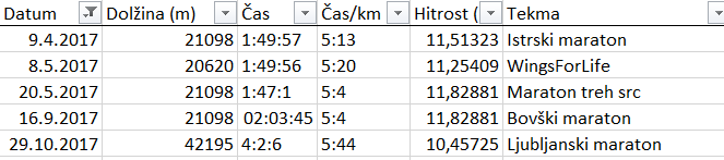 V tekaški sezoni 2016/2017 sem pretekla 1.256,67 km in prekolesarila 871,92 km. Skupne rekreacije je bilo precej manj kot leta poprej. Vendar naj bi zadostovalo, da pretečem maraton 2017, solidno.
