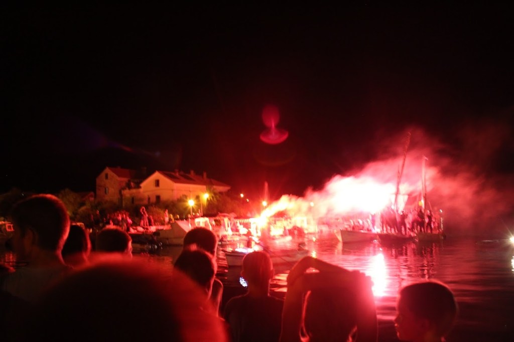 Praznovanje se prične že popoldan, ko se mladi in mladi po srcu na čolnih in barkah povežejo skupaj z vrvjo ter kot pravo ladjevje odplujejo ob petju (in pitju) na Veli Iž.