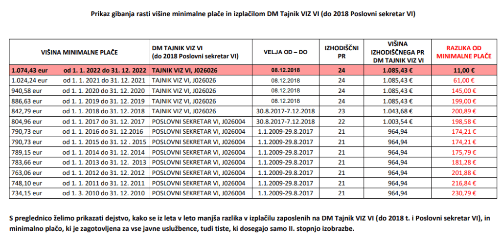Vem samo, da ne smemo obupati, četudi je vedno težje »požreti«, da je začetni plačni razred Tajnika VIZ VI samo še 10 € več kot trenutna minimalna plača.