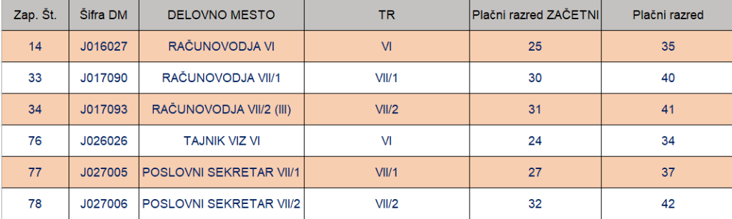 Malo podrobneje si oglejte plačne razrede ter jim primerjajte med obema delovnima mestoma ter v okviru istega delovnega mesta.