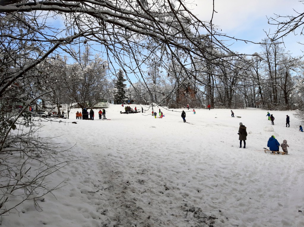 Kaj pa pozimi? Tisti, ki nismo ravno ljubitelji fitnesa in zaprtih prostorov, si lahko privoščimo hitro hojo v popoldnevih kratkih zimskih dni v soju čelnih svetilk vse do Lovske koče na Toškem Čelu, kjer nas bodo vedno prijazno sprejeli in pogostili z odličnimi domačimi flancati. Zimski pohodi v sneženi gazi so idilični. Pravljični. Celo adrenalinski, če opaziš ob poti svetleče se oči, ki te opazujejo vsaj tako prestrašeno kot jih ti. Navadno se izkaže, da je samo prestrašen muc iz bližnje kmetije ali hiše. Pa brez panike: pozimi medvedi spijo.