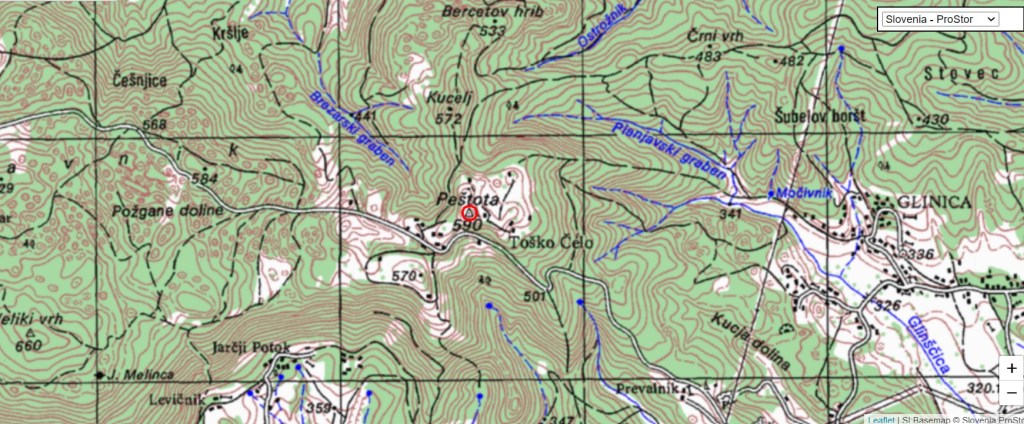 Vrh Peštota nad Toškim Čelom je skrit. Naj vam bo spodnji zemljevid v pomoč: