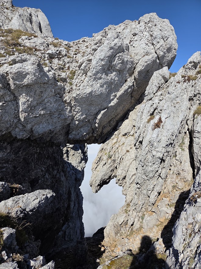 Po kakšni ure hoje postaja megla vedno redkejša in skoraj že na grebenu nas pričaka nepozaben razgled.